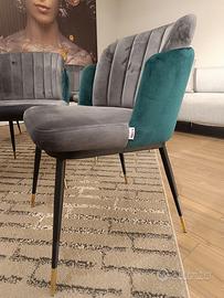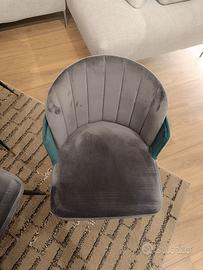 Comoda sedia imbottita in grigio e verde con rivestimento vellutato in poliestere