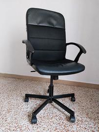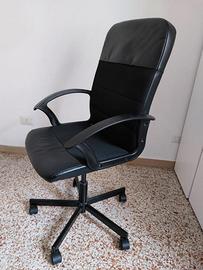 sedia girevole IKEA RENBERGET, per ufficio nera di stoffa e pelle sintetica. Morbida, robusta, comoda.