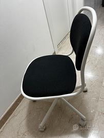 Vendo sedia girevole ikea per studio/ufficio/camera con rotelle bianca e grigio scura. Seduta e schienale morbidi. Rotelle con meccanismo frenante. Usata pochissimo, pari al nuovo.