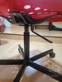 Sedia Ikea con seduta in plastica rossa e struttura nera su ruote, completa di leva per regolazione altezza. Non spedisco.