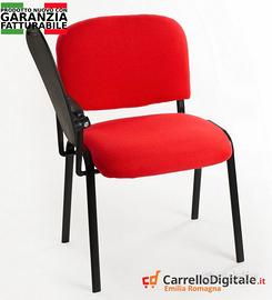 Sedia impilabile da attesa conferenza per ospite in tessuto con Ribaltina. Prezzo 43,90 euro cadauna IVA INCLUSA Spedizione in TUTTA ITALIA a soli 8 euro IVA inclusa Possibilità di pagare alla consegna con un sovrapprezzo di 6 euro IVA inclusa Acquisto minimo 6 Pezzi Poltroncine comode particolarmente indicate per le sale d'attesa, dal design lineare ed elegante, si adattano bene a qualsiasi tipo di ambiente Da sfruttare come poltroncine ospite oppure nelle conferenze e in tutte le occasioni in cui c'è bisogno di una seduta comoda e di un tavolino o una tavoletta per scrivere non avendo a disposizione una scrivania Possono essere posizionate da sole o in gruppo queste sedie sono perfettamente impilabili le une sulle altre. KIT Composto da 6 Pezzi DISPONIBILI SCONTI PER QUANTITA' SUPERIORI CARATTERISTICHE o Telaio Fisso con piedi non regolabili in altezza o Colore Telaio: Nero o Colore Seduta: Rosso o Comoda imbottitura in spugna o Altezza da Terra 46 cm o Larghezza Seduta: 47 cm o Profondità Seduta: 42 cm o Larghezza Spalliera: 49 cm o Altezza Spalliera: 35 cm RIBALTINA o Struttura in tubolare d'acciaio da 1,2mm o Imbottitura ad alta densità e spessore maggiorato o Rivestimento resistente all'usura o Bracciolo con anima in acciaio rivestito in pvc o Snodo ribaltina completamente in metallo o Tavoletta in resina completamente piena DISPONIBILI COLORI DIFFERENTI E POSSIBILITA' DI ACQUISTARE SENZA LA RIBALTINA INVIACI UN MESSAGGIO CON IL TUO NUMERO E TI CONTATTEREMO NON APPENA POSSIBILE