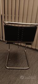 n.2 sedie disegnate da Mart Stam, struttura: tubo di acciaio lucidato e cromato a specchio, sedile e schienale in cuoio pesante nero