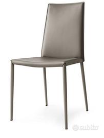 Sedia in stile moderno con schienale alto, struttura in metallo verniciato nello stesso colore della seduta. Le gambe sono a sezione conica. Lo schienale e la seduta sono rivestiti in rigenerato di cuoio. Colori disponibili: Bianco, Tortora, Nero. Misure della sedia (LxPxH) cm. : L 46 x P 52 x H 89. Altezza seduta cm. 46. La sedia non è impilabile. Possibilità di spedizione in tutta Italia, chiedere preventivo. Per maggiori informazioni potete scrivere una mail o chiamare / inviare messaggio anche whatsapp al numero 377 4111398.