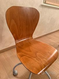 Sedia dal design moderno ed elegante, con seduta e schienale in legno curvato dalla linea ergonomica. Struttura solida con base su ruote, ideale per studio, ufficio o zona living. In buone condizioni, comoda e funzionale Prezzo trattabile
