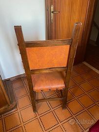 Vendo sedia rustica in legno scuro, molto solida, con seduta e schienale in cuoio color cognac e borchie decorative. Ideale per ingresso, studio, casa di campagna o taverna.