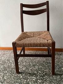 Sedia in legno e paglia antica marrone scuro