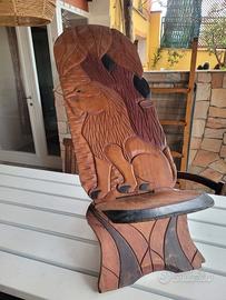 Sedia in legno massiccio intarsiata a mano. Un capolavoro d'arte. Consegna a mano o spese di spedizione a carico destinatario.