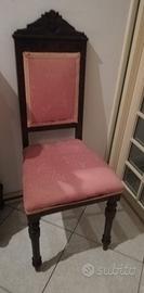 Sedia in legno scuro antica foderata di rosa, in ottimo stato. Zona San Giovanni, Roma.