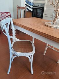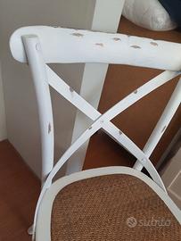 Sedia in paglia di Vienna e legno bianco shabby