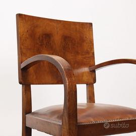 Elegante sedia con braccioli, seduta a molle con rivestimento in similpelle,