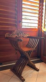 Sedia in savonarola rinascimentale in noce intagliato. Secolare e autentica, no replica, tutta oroginale mai restaurata ed in ottime condizioni. Solo per veri intenditori.