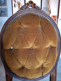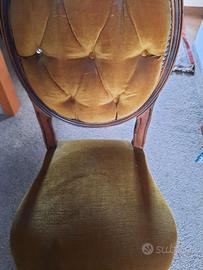 sedia di gusto classico, con struttura in legno e imbottitura in velluto color marrone bruciato. Nell'insieme è in buone condizioni ma con piccole usure del tempo (manca un bottone all'imbottitura dello schienale)sedia in velluto, pezzo unico