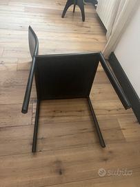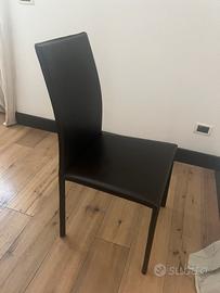 Sedia in vera pelle color Tortora, per sala da pranzo, con schienale alto. Disponibili 8 pezzi, tutte in ottime condizioni Il prezzo indicato è relativo alla singola sedia