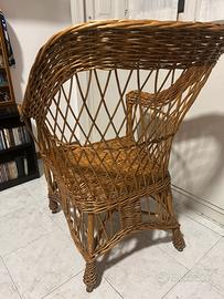 Bellissima sedia in vimini intrecciato a mano, solida e comodissima, dallo stile boho / vintage / naturale.