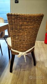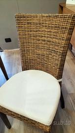 sedia in vero vimini alta di schienale seduta cuscino imbottito