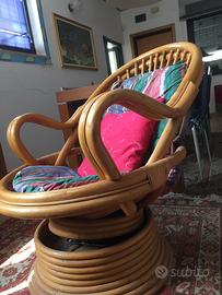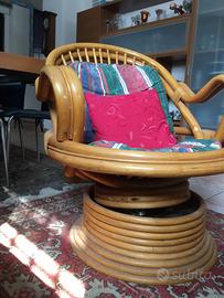 Sedia in vimini con cuscini anni 70 tenuta benissimo. Arredameno boho chic. Valore 150€ Si accettano offerte ragionevoli. Da ritirare sul posto.