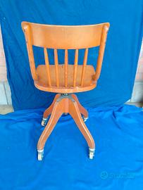 Cedo sedia industriale vintage anni '60, come da foto. Con ruote e seduta girevole e regolabile in altezza. Schienale a listelli. Consegna a mano. Vero affare, prezzo trattabile.
