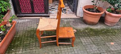 Sedia in legno impagliata con inginocchiatoio, dimensioni: seduta 44x38, altezza schienale 90, larghezza totale 72 cm.