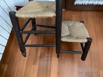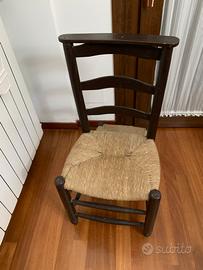 Sedia/ inginocchiatoio anni 30, legno massello , seduta e inginocchiatoio impagliati. Misure: larghezza cm.40, altezza cm.85. Non ha tarli