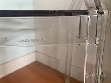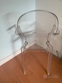 Poltroncina Kartell modello Louis Ghost design di Philippe Starck. Seduta realizzata in policarbonato trasparente, resistente a urti e agenti atmosferici. Set impilabile e adatto a qualsiasi ambiente.