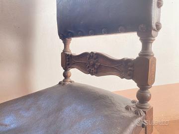 Sedia legno antica neo rinascimentale in pelle