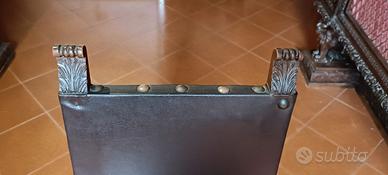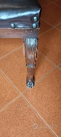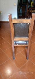 set di 6 sedie in legno con schienale e seduta in cuoio, spalline e gambe intersiate.