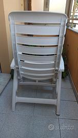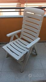 Vendo lettino / sedia da esterno in plastica, perfetta per il tuo terrazzo o giardino. È bianca e pieghevole, quindi facile da riporre. Struttura robusta. Ideale per rilassarsi all'aperto. Modello Cleopatra con prolunga, marca Scabo.