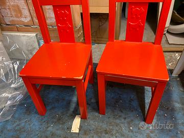 Vendo coppia e singola sedia in legno per bambini color rosso marchio ikea
