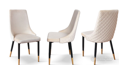 Sedia Elegante in Velluto – Struttura in metallo con seduta imbottita in velluto disponibile nei colori: beige, grigio, tortora o verde. Retro con motivo geometrico a triangolo e piedini color oro per un tocco sofisticato. Misure: Larghezza 40 cm, Profondità 43 cm, Altezza totale 93 cm, Altezza seduta 49 cm. Una sedia raffinata e moderna, perfetta per ambienti eleganti. Disponibile in pronta consegna. prezzo 4 sedie.