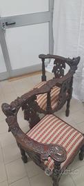 sedia doppia "Lui & Lei"o divano"confident". Questo stile di mobile, caratterizzato da due sedute rivolte in direzioni opposte ma unite da un bracciolo comune, è tipico delXIX secolo(fine '800) ed è spesso realizzato in stileNeo-Rinascimentale.
