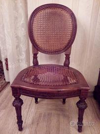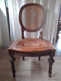 Sedia singola epoca Luigi XVI con seduta in vimini intrecciata.