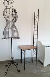 Sedia MAGGI vintage di design struttura in acciaio, seduta in legno schienale alta a scaletta altezza massima di schienale 130 cm. altezza di seduta 45,5 cm. larghezza massima di seduta 48 cm.