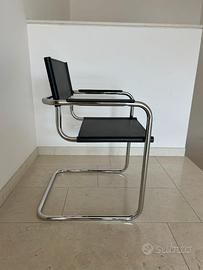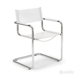 La nostra sedia Marte è ispirata ai classici del design Bauhaus. La sedia Marte è realizzata con una struttura in acciaio tubolare ad alta resistenza e con base a slitta cromata. Schienale e seduta sono in vera pelle nera oppure selezionabile in colore bianco o nero per la versione con braccioli.