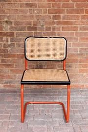 Sedia modello Cesca produzione Cidue. Telaio in metallo tubolare, seduta e schienale in faggio colore nero e paglia di Vienna, da riparare in un paio di piccoli punti sulla seduta, visibile in fotografia. Il marchio è presente sotto la seduta. Modernariato anni 70 con lievi segni del tempo. Dimensioni: cm 47x54x80h