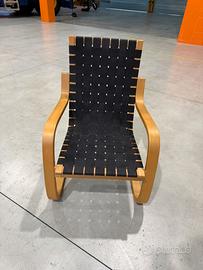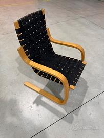 8 Sedie lounge a sbalzo modello 406 disegnate da Alvar Aalto per Artek. Struttura in legno di betulla curvato con seduta in tela intrecciata. Pezzi originali risalenti agli anni 70’-80’ molto ricercati da collezionisti ed intenditori.