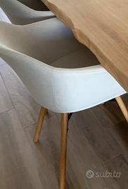 Set di n. 6 sedie con braccioli e piedi in legno. Stile moderno scandinavo. Pari al nuovo. Ottima seduta, molto comode
