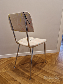 Sedia vintage restaurata e rivestita artigianalmente con tessuto di design. Perfetta per soggiorni o camere da letto. Possibilità di consegna a mano in zona Isola a Milano