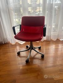 Sedia Modus Vintage, Design Osvaldo Borsani per Tecno Italia Anni 80. Sedia da ufficio con braccioli, scocca in materiale plastico arancione/rossa, seduta e schienale con imbottitura in espanso e rivestimento in tessuto rosso, gambe in metallo a cinque razze con rotelle. Presente il marchio della manifattura visibile in foto