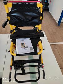 Sedia a Rotelle con sistema a cingoli manuali per scendere le Scale per Anziani Disabili. La sedia portantina per scale manuale pieghevole viene diffusamente utilizzata in casa per gli anziani, per la sicurezza a scuola, negli ospedali, negli alberghi, ecc. per le evacuazioni di emergenza