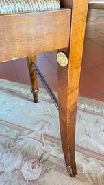 La sedia è realizzata in ciliegio con elegante seduta intrecciata in paglia di Vienna, lavorata secondo la tradizione. Le linee sono classiche e molto raffinate, con schienale curvato e struttura slanciata che la rendono un elemento di arredo senza tempo.
