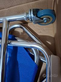 Mai usata (per fortuna), ancora incellophanata dalla fabbrica. Sedia da wc con rotelle Mobiclinic Manzanares, marchio europeo, per anziani e disabili coperchio, comoda portatile, marcatura CE, schienale e braccioli imbottiti. Comprata per 114 euro su Amazon.