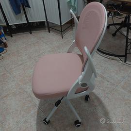 Sedia nuova rosa e bianca con rotelle e poggia braccio alzabili, molto comoda e maneggevole per info contattami