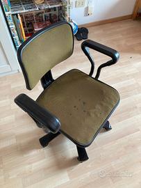 Sedia da ufficio Olivetti Synthesis modello EdYs, su disegno di Hans von Klier ed Ettore Sottsass. Ruote e braccioli integri. Tutti i componenti meccanici di regolazione sono funzionanti (altezza seduta, inclinazione schienale e altezza schienale).