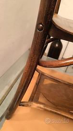 Sedia originale stile Thonet in legno di faggio curvato. La struttura è solida e sana, ma presenta evidenti danni e richiede un intervento di restauro. Ideale per progetto di recupero o per ricambi originali. Ritiro a mano.