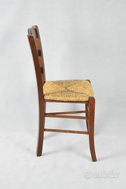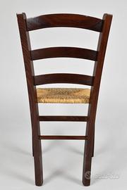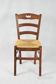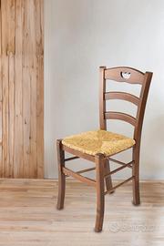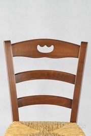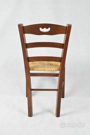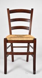 Sedia nuova con robusta struttura in legno di faggio, verniciata color noce con seduta in paglia vera disponibile in due varianti. Il prodotto è già assemblato. Le misure totali della sedia sono: 46 x 43 x 88 cm.