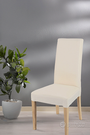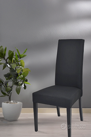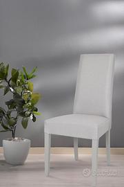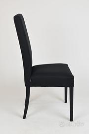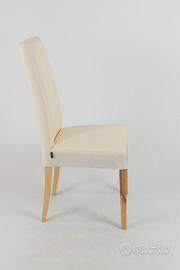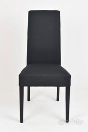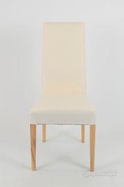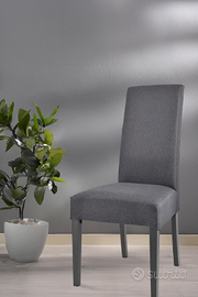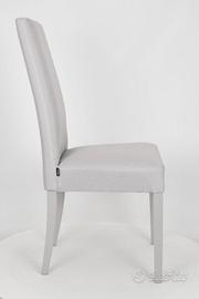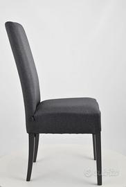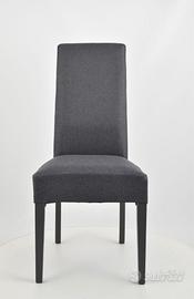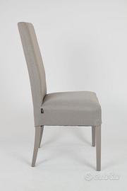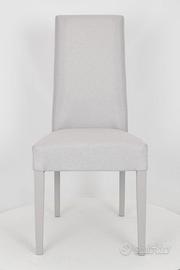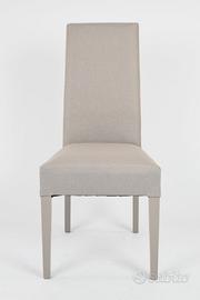 Sedia nuova imbottita e rivestita in tessuto disponibile in cinque varianti di colore (camoscio, avorio, grigio scuro, nero, grigio perla) con struttura in legno di faggio.