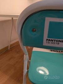 Sedia pantone originale (15-5519 verde acqua). Usata ma in buone condizioni. Segnalo solo che lo schienale è leggermente staccato in un punto (come si può vedere nell'ultima foto).