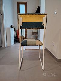 Sedia dalla linea essenziale interamente restaurata, la sedia è stata sabbiata e verniciata a polvere e il rivestimento interamente rifatto un pezzo d'arredamento che dà un colore alla casa.