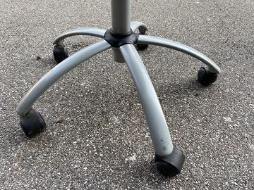 Sedia in legno multistrato con rotelle. Girevole e regolabile in altezza. In condizioni più che buone, funziona perfettamente. Qualche segno sul bordo (vedi foto). Solo ritiro in loco