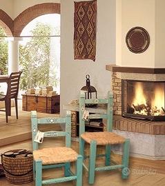 Sedie su misura per caminetto,in stile sardo costruite secondo la tradizione dell’artigianato Artistico della Sardegna,in legno di pioppo o pino con fondo in erba palustre intrecciato manualmente .
